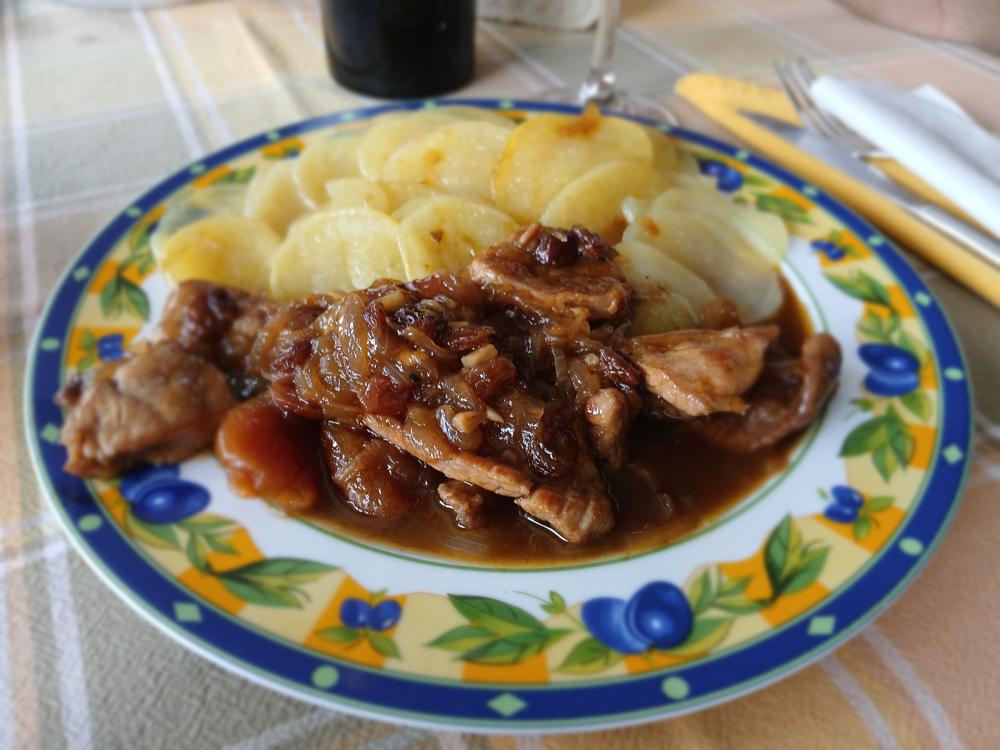 Pechugas de pollo con salsa de ciruelas pasas y manzanas