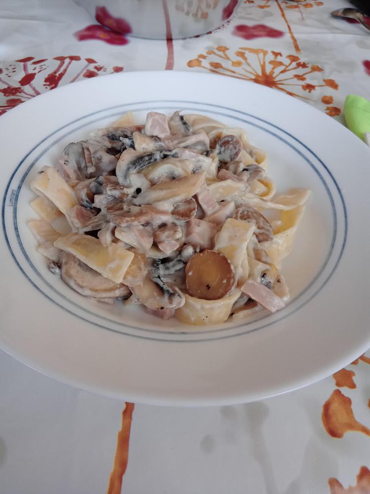 Cintas con champiñones y jamón de york