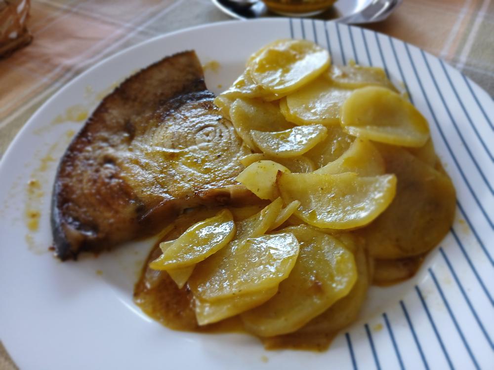 Pez espada con patatas y vinagreta de limón
