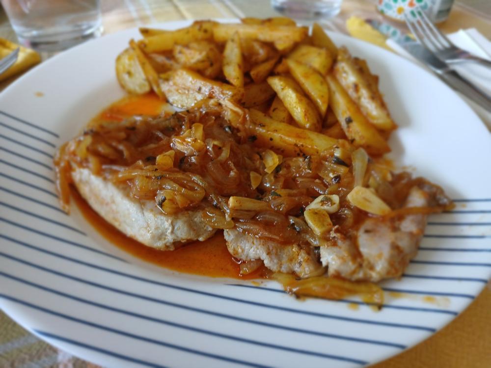 Atún encebollado