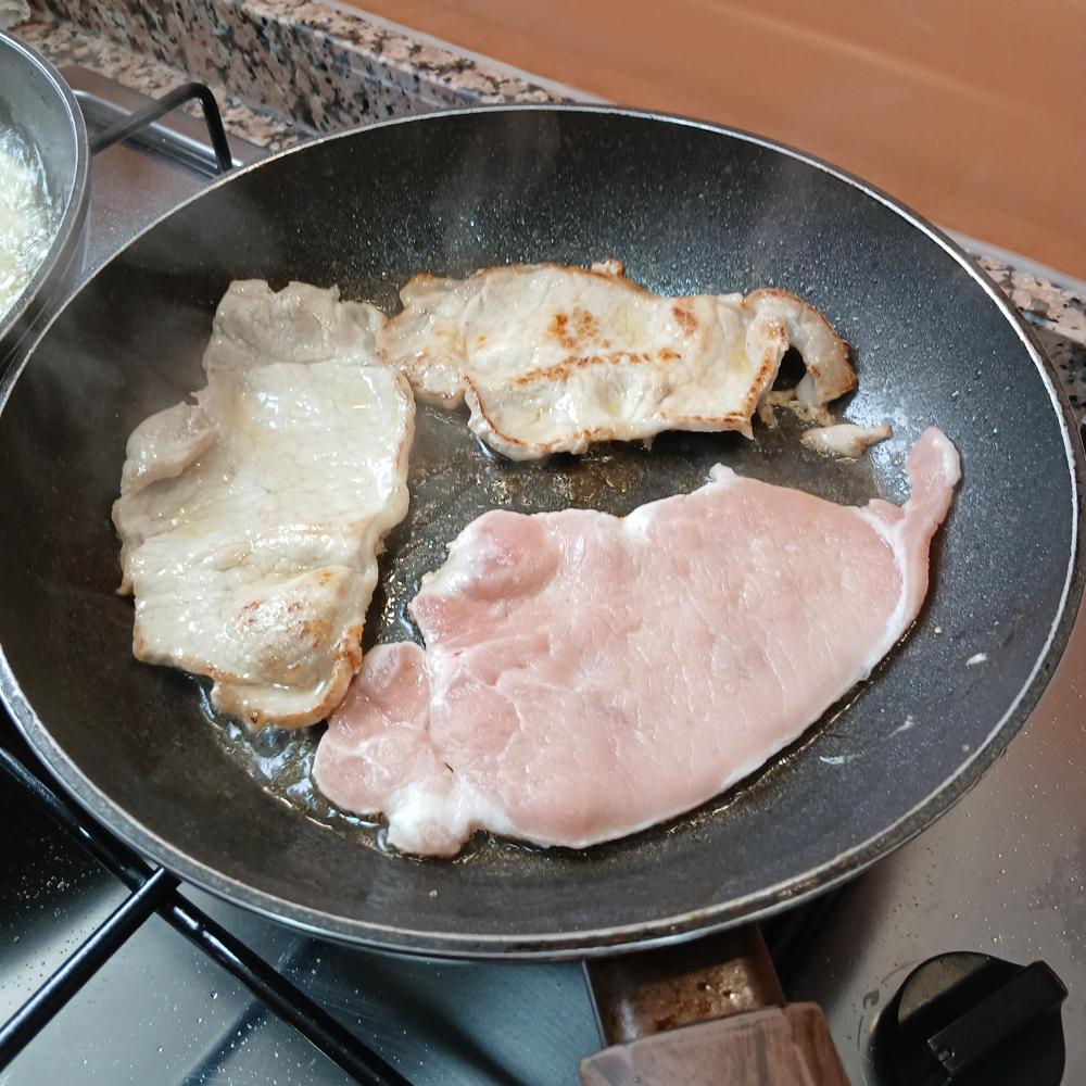 Hacemos los filetes de lomo en una sartén con un poco de aceite de oliva.